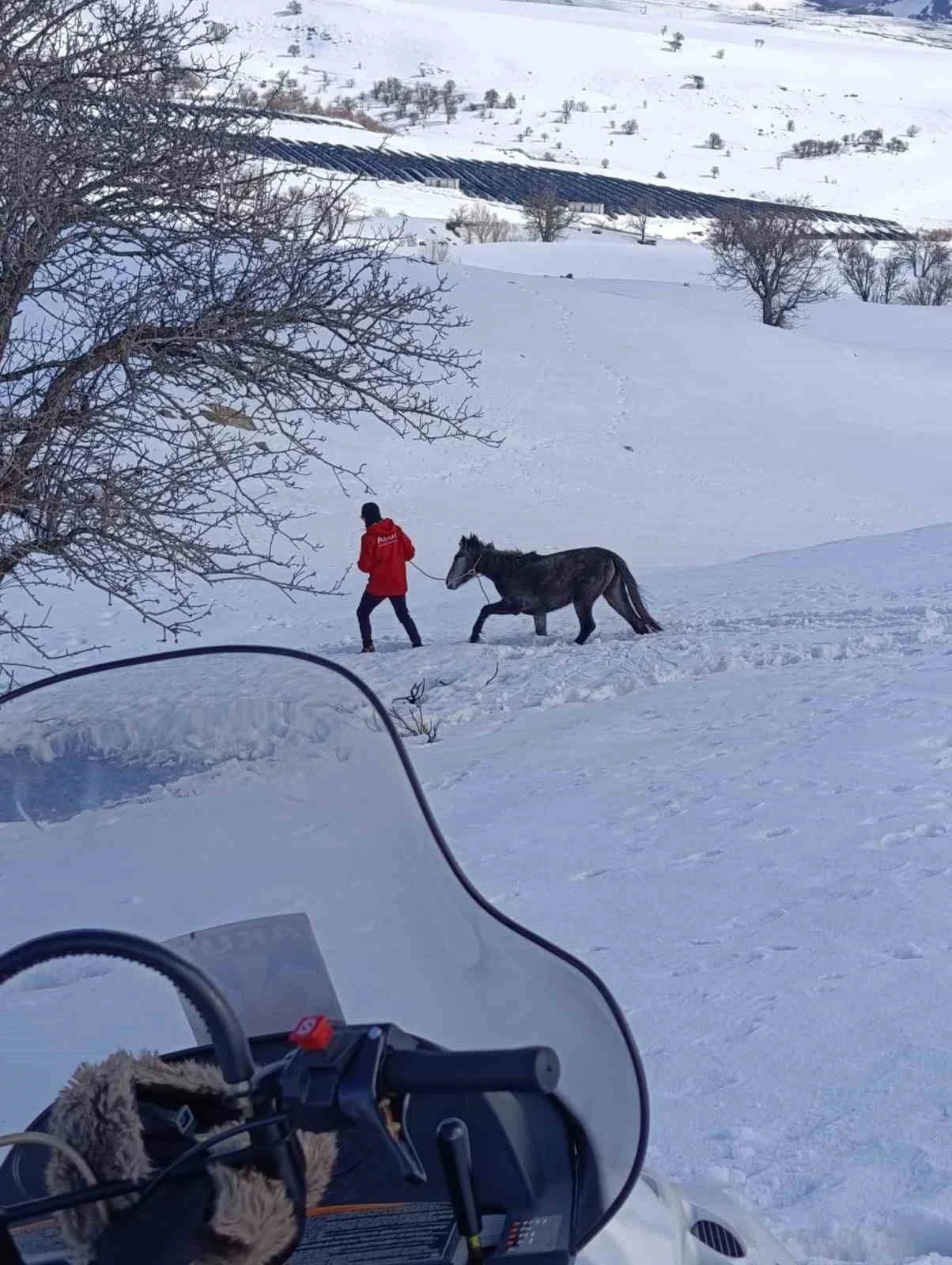 Bingöl’de dağda karlar arasında mahsur kalan ve kurt saldırısına uğrayarak yaralanan at, AKUT Bingöl ekibi tarafından kurtarıldı.