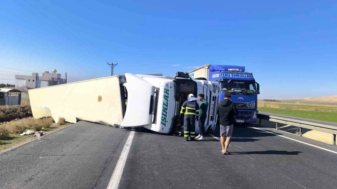 Mardin’in Nusaybin ilçesinde kontrolden çıkan peynir yüklü tırın devrilmesi sonucu meydana gelen trafik kazası maddi hasarla atlatıldı.