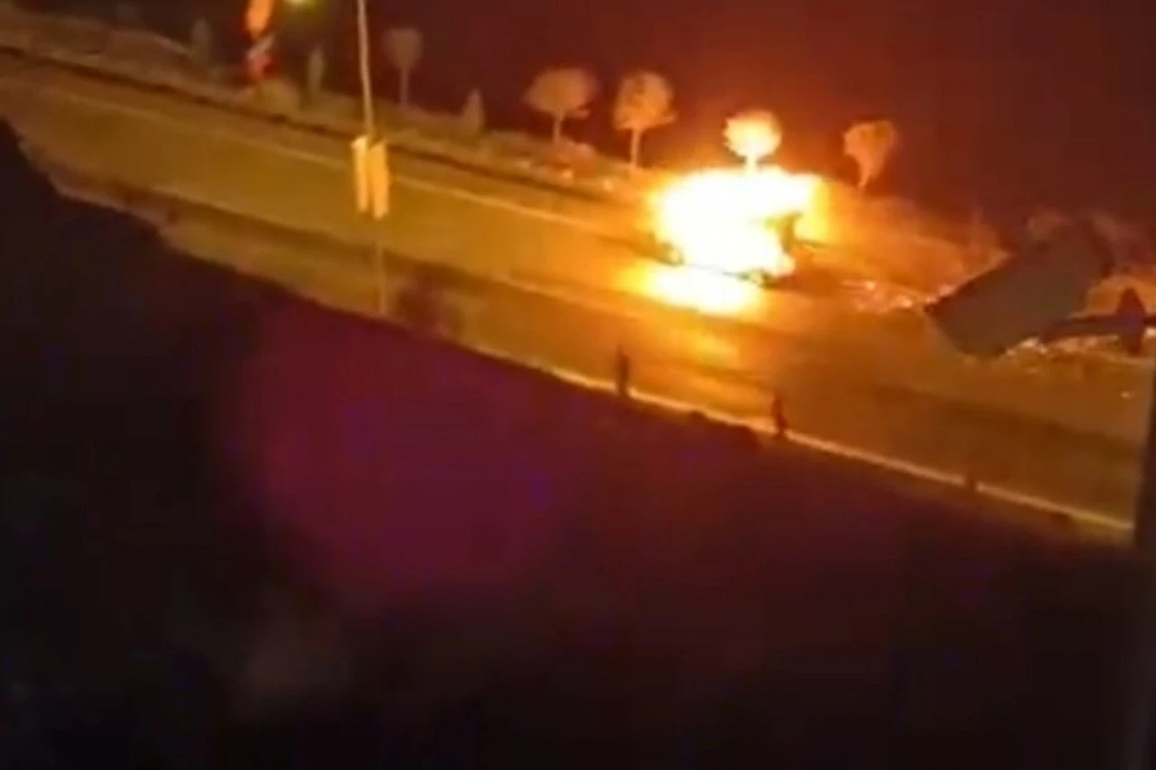 Yangını fark eden sürücü, aracın kapısını açarak dışarı atladı. Yanan araç ise bariyerlere çarparak durabildi. O anlar, çevredekiler tarafından cep telefonu kamerasıyla kaydedildi.