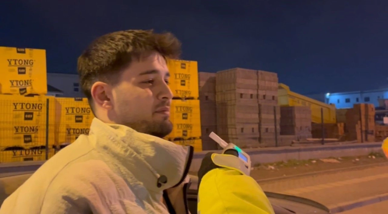 Polis ekiplerine "Abi alkol var, üflemeyeyim" diyen sürücü, trafik polisinin "Üflemezsen ret alacağım, 2 yıl ehliyetin gidecek" demesi üzerine, "Üflersem 6 ay değil mi. Es geçelim abi, yalvarırım gözünü seveyim. Mahvolurum ben, işim bu benim. Üflemeyeyim ne olur" diye yalvardı. Trafik polisinin "Üflüyor musun son kez soruyorum, üflemezsen ret alacağım" demesiyle beraber ağlama taklidi yaptı. Uzun uğraşlar sonucu alkolmetreye üfleyen Emre E., 1.29 promil alkollü çıktı. İşlemleri yapılmak üzere ekip aracına giden alkollü sürücü sinirden çakmağı patlattı. O anlar saniye saniye kameraya yansıdı. Alkollü sürücüye 9 bin 267 lira ceza yazıldı.