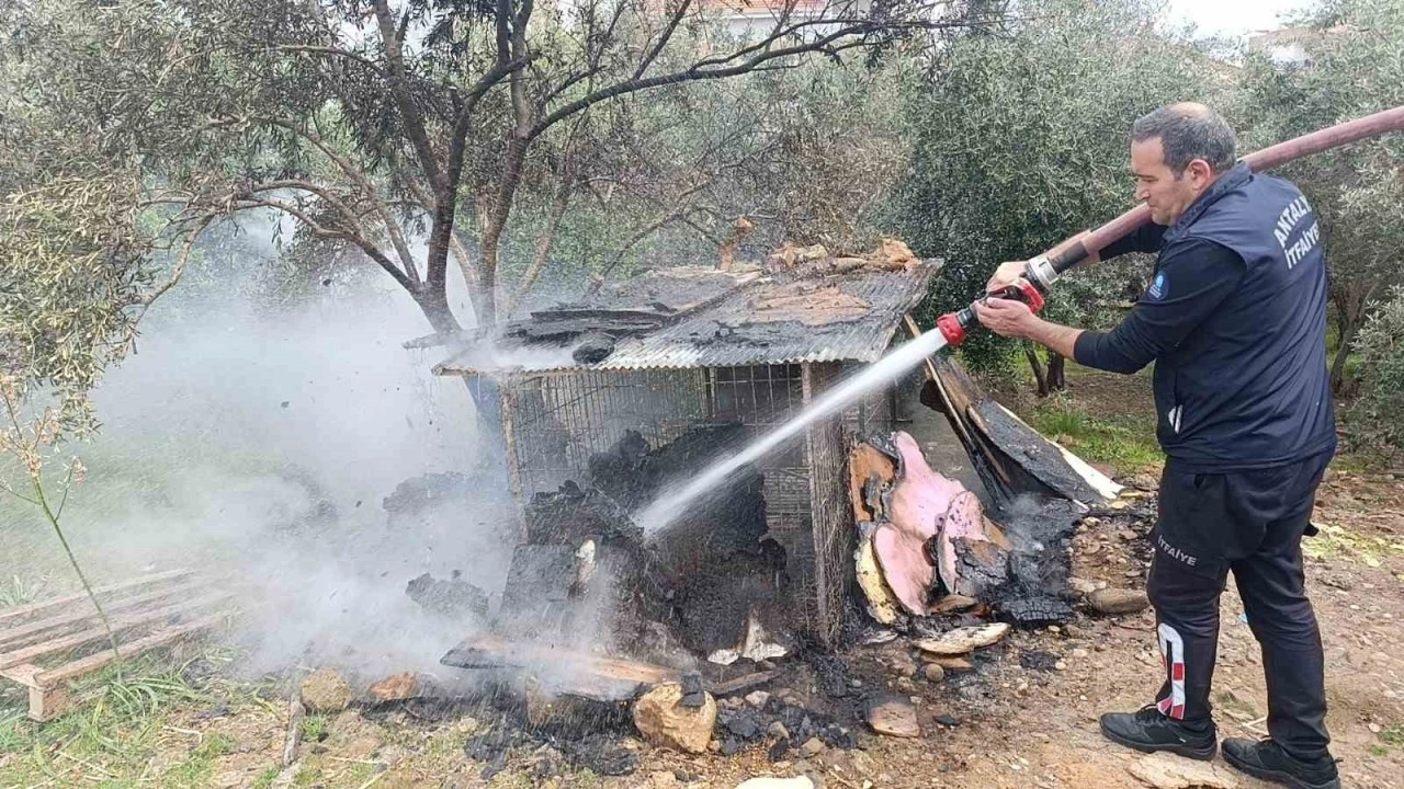 Antalya’nın Manavgat ilçesinde orman arazisi içinde bulunan tavuk kümesinde çıkan yangın itfaiyenin müdahalesi sonucunda söndürüldü. Yangın sırasında kümesteki tavukların dışarıda olmaları telef olmalarını önledi.