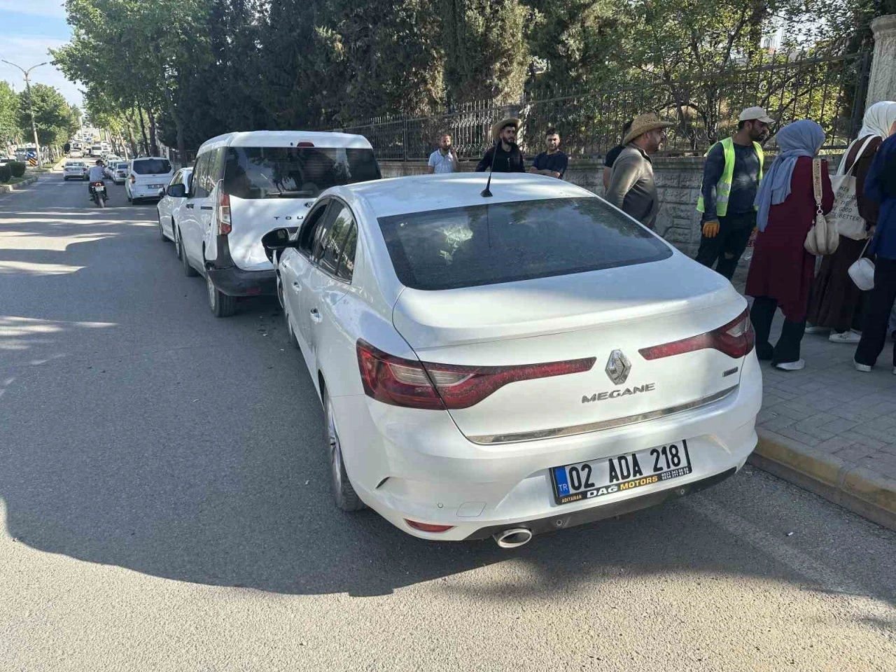 Adıyaman’da, kontrolden çıkan otomobil, park halindeki araçlara çarptı.