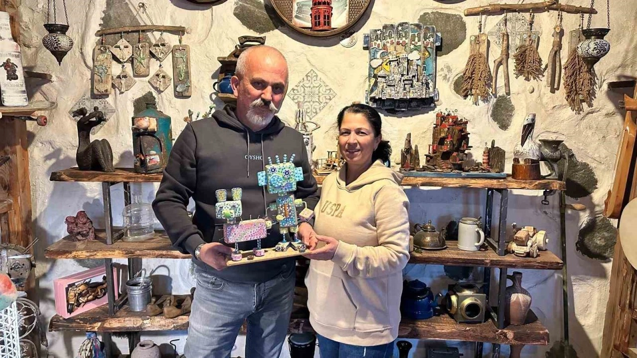 Isparta’da 60 yaşındaki emekli esnaf Rıfat Küçükşahin, pandemi döneminde hobi olarak başladığı atıl malzemelerle sanat yapma merakı sayesinde evini adeta bir müzeye dönüştürdü. Trakya Üniversitesi restorasyon bölümü mezunu olan Küçükşahin, mezatlardan ve sokaktan bulduğu malzemeleri sanata dönüştürerek tablolar, figürler ve ev eşyaları üretmeye başladı.Çoğunu sokaktan bulduğu ahşap, metal ve teneke malzemelerden yaptığı tablolar, figürler ve ev eşyalarını, evinin içinde ve bahçesinde sergiliyor.