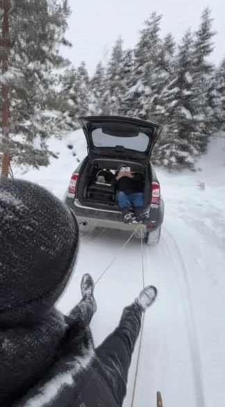 Demirci Köyü’nde ise köy sakinleri, tahta kızaklarını araçların arkasına halat yardımıyla bağlayarak köy yolunda gezinti yaptı. Ortaya çıkan eğlenceli ve renkli anlar cep telefonu kameralarıyla kaydedilirken, kızak keyfi köyde adeta şenlik havası oluşturdu.