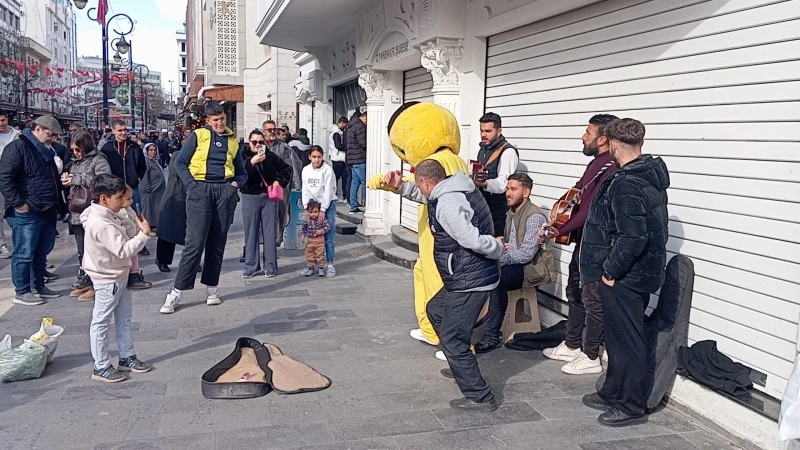 Eglenceye damga vuran isim ise Diyarbakır’ın sevilen maskotu “sarı civciv” oldu. Özellikle çocukların büyük ilgi gösterdiği sarı civciv maskotu, hem miniklerle fotoğraf çektirdi hem de vatandaşlarla birlikte halay çekti.
