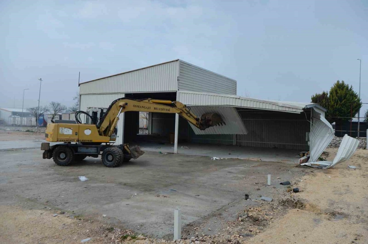 Tarım arazileri üzerine kaçak olarak inşa edilen konut, işyeri, fabrika ve depo gibi yapılar Osmangazi Belediyesi ekipleri tarafından tek tek tespit edilerek yıkılıyor. Tarım arazilerini mercek altına alan Yapı Kontrol Müdürlüğü ekipleri, son olarak Ahmetbey Mahallesi’nde ruhsatsız olarak inşa edildiği belirlenen bir depoyu yıktı.