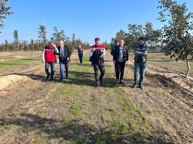 2020 yılında tesis edilen ceviz bahçesinde teknik incelemelerde bulunan Aksoy, üreticilerle ceviz üretimi, bahçe yönetimi ve verimliliği artırmaya yönelik uygulamalar hakkında istişarede bulundu.