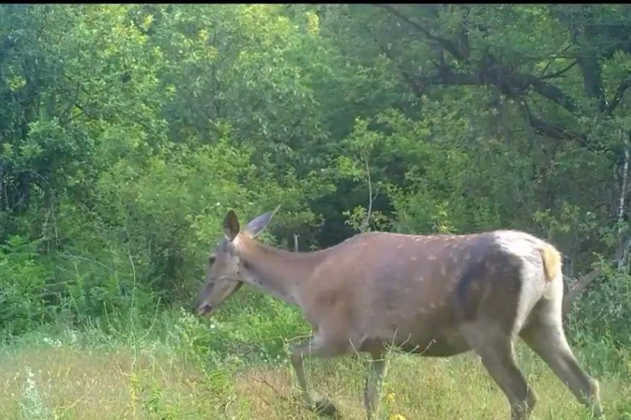 Doğa Koruma ve Milli Parklar Genel Müdürlüğü tarafından paylaşılan görüntülerde, dişi bir kızıl geyiğin ormanın derinliklerinde sessizce ilerlediği görülüyor.