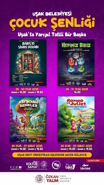 23 Ocak ile 2 Şubat tarihleri arasında çocuklarla buluşacak olan organizasyon kapsamında; çocukların ve ailelerin büyük bir ilgiyle katılım sağlayacağı birbirinden farklı atölyelerde eğlenceli aktiviteler gerçekleşecek. İki hafta boyunca Perşembe, Cuma, Cumartesi ve Pazar günleri aktif olacak etkinlikler kapsamında; Uşak Belediyesi Şehir Tiyatrosunun hazırladığı birbirinden farklı tiyatro oyunu, Uşak Kent Orkestrası ile çocuk konserleri ve sürpriz oyunlar Atatürk Kültür Merkezi’nde çocuklarla buluşacak.