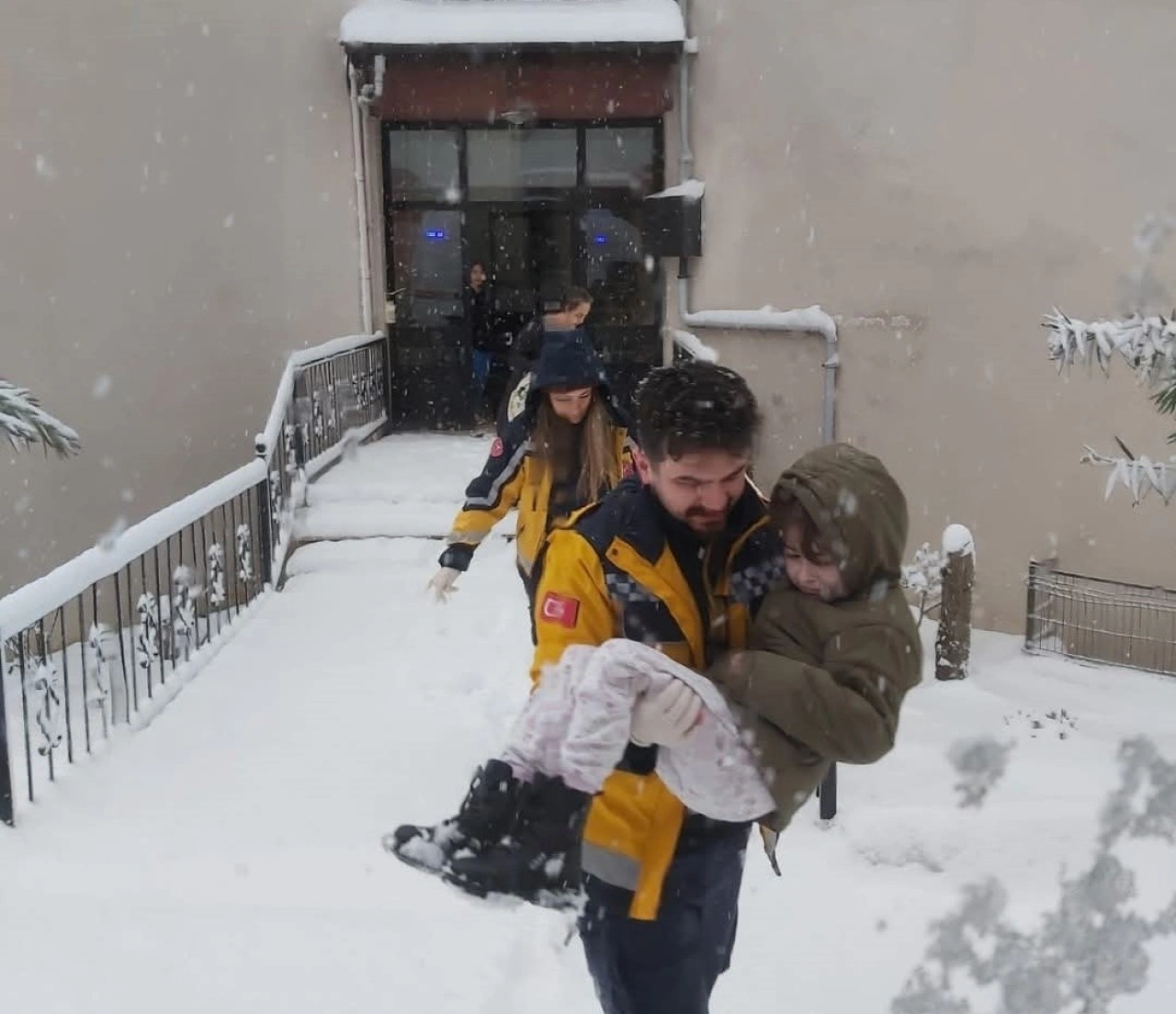 Düzce(İHA) – Düzce İl Sağlık Müdürlüğü 112 Acil Sağlık Hizmetleri ekipleri, yoğun kar yağışı sebebiyle hastanelere ulaşamayan hastaları zor anlarında yalnız bırakmadı. Hasta olan çocukları kucaklarında taşıyan ekipler, yaşlıların ise paletli ambulanslarla yardımına koştu.