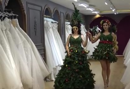 Bu gelinlik başka gelinlik: Yapay çam ağacıyla gelinlik sergilendi