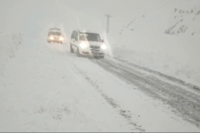 Ağrı'nın Hamur ile Tutak ilçeleri arasındaki karayolunda etkili olan yoğun kar yağışı ve tipi nedeniyle çok sayıda araç yolda kaldı. Vatandaşlar, ulaşımın durma noktasına geldiği bölgede yardım bekledi.